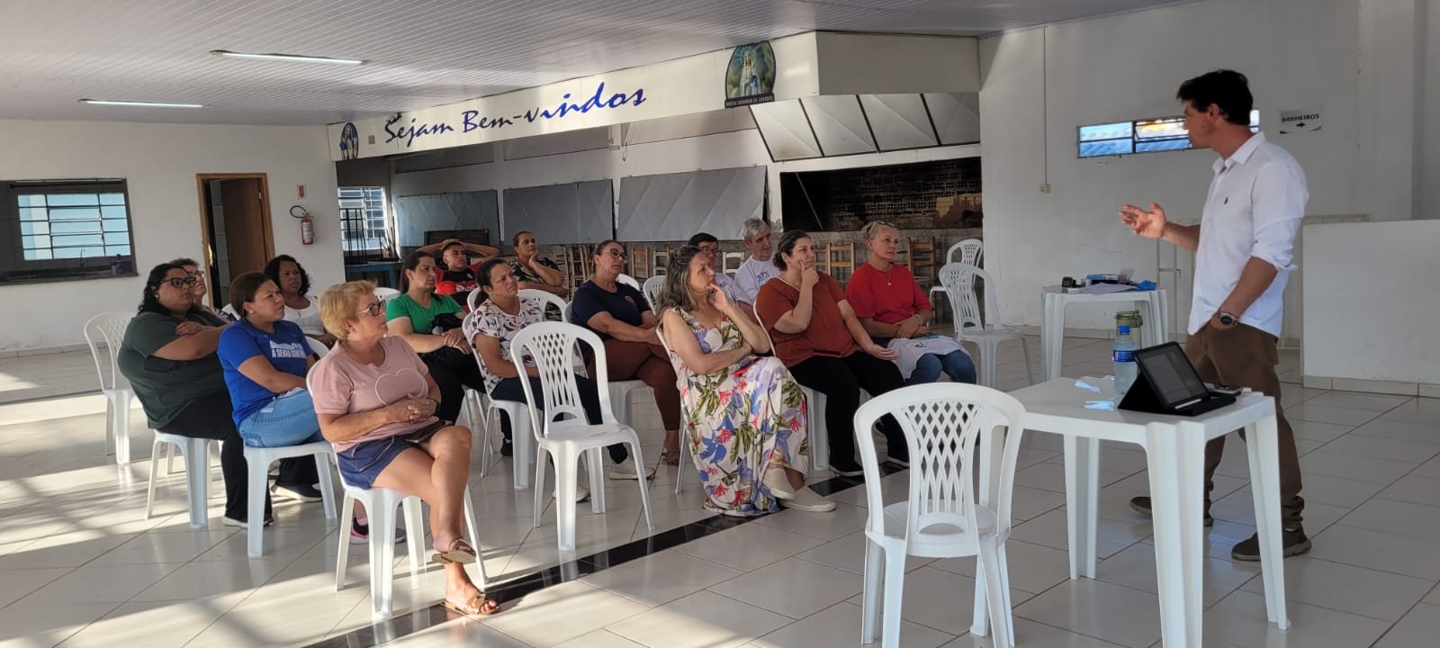Na UBS Centenário, em parceria com o CRAS II, a atividade abordou o tema “Planejamento de vida”, promovendo reflexões e orientações sobre organização pessoal, familiar e social.