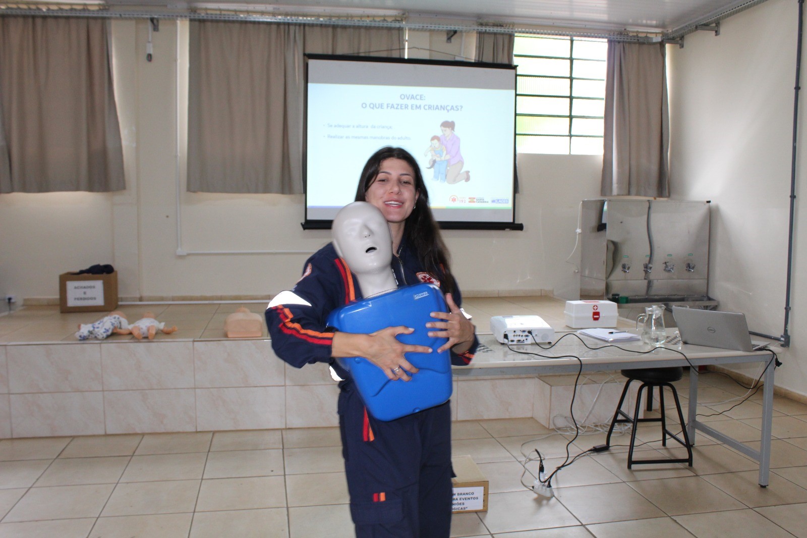 A formação foi conduzida pela enfermeira responsável técnica, do Serviço de Atendimento Móvel de Urgência (Samu), Franciele Mendes de Oliveira, que adotou uma metodologia didática e participativa, alinhada à realidade do ambiente escolar.