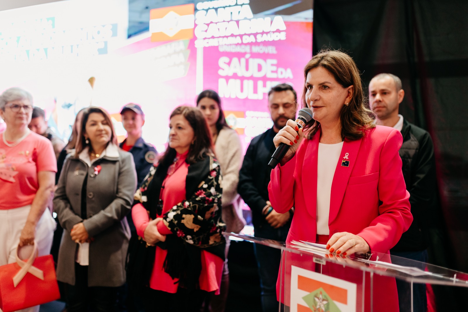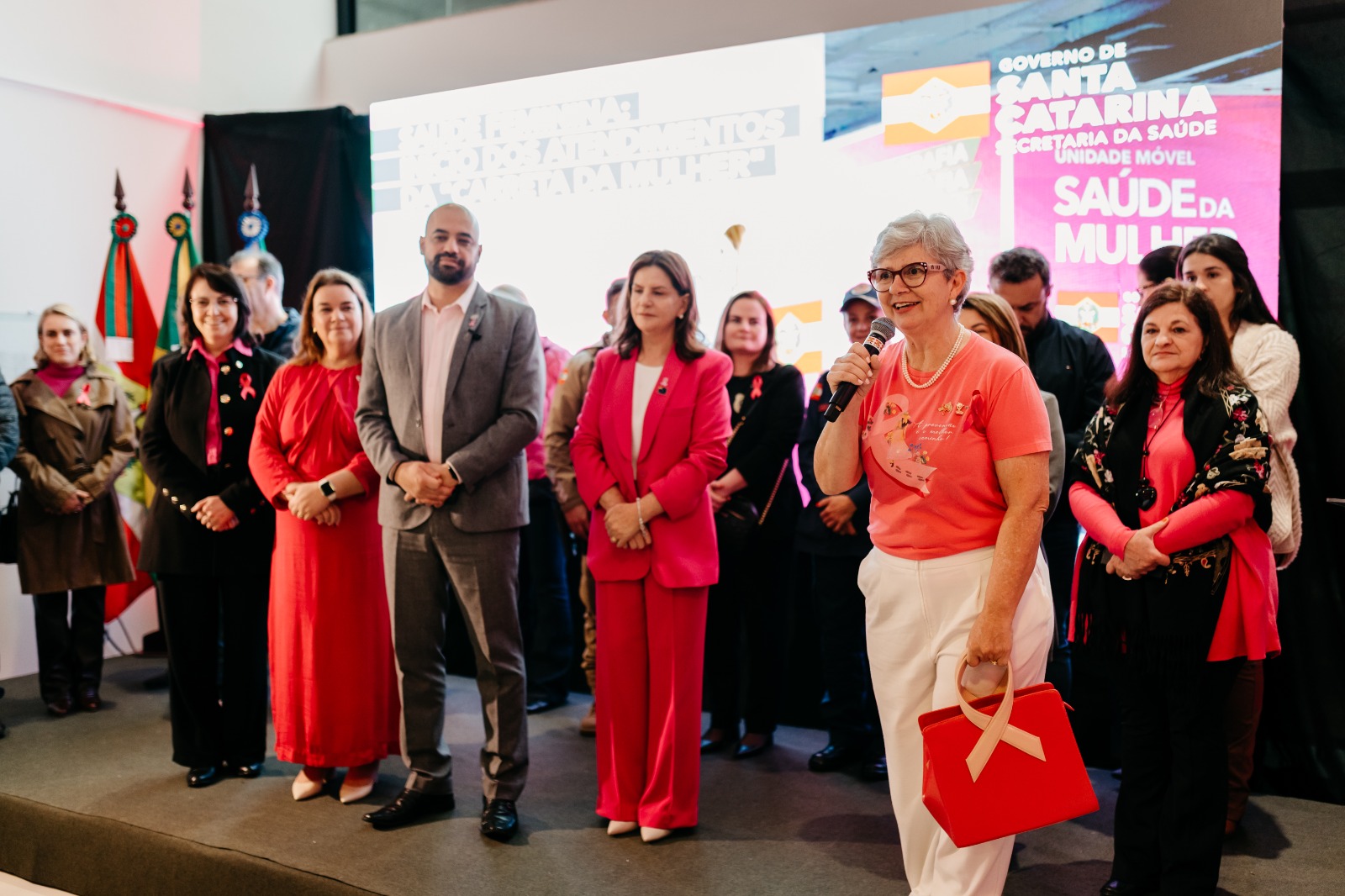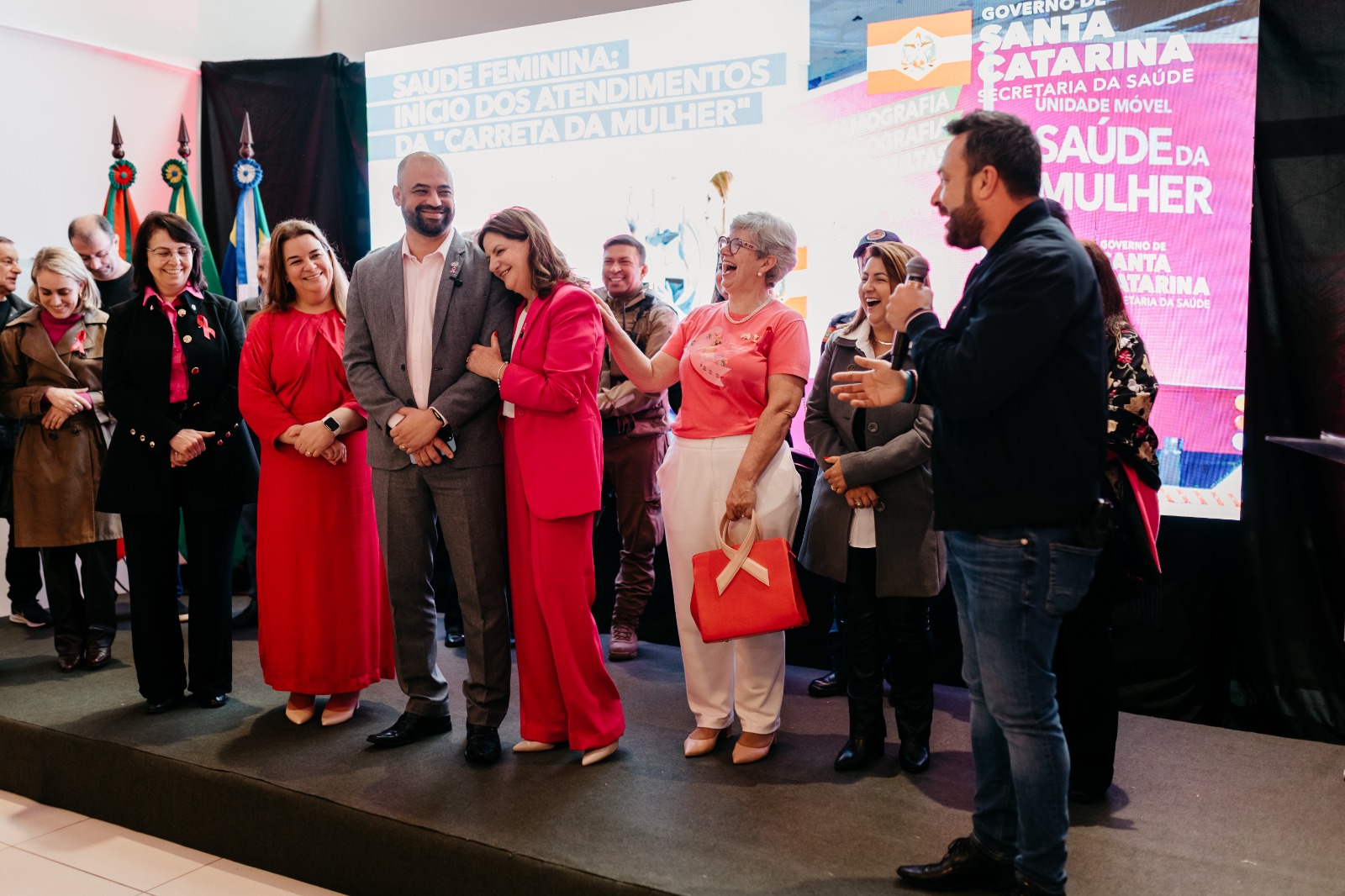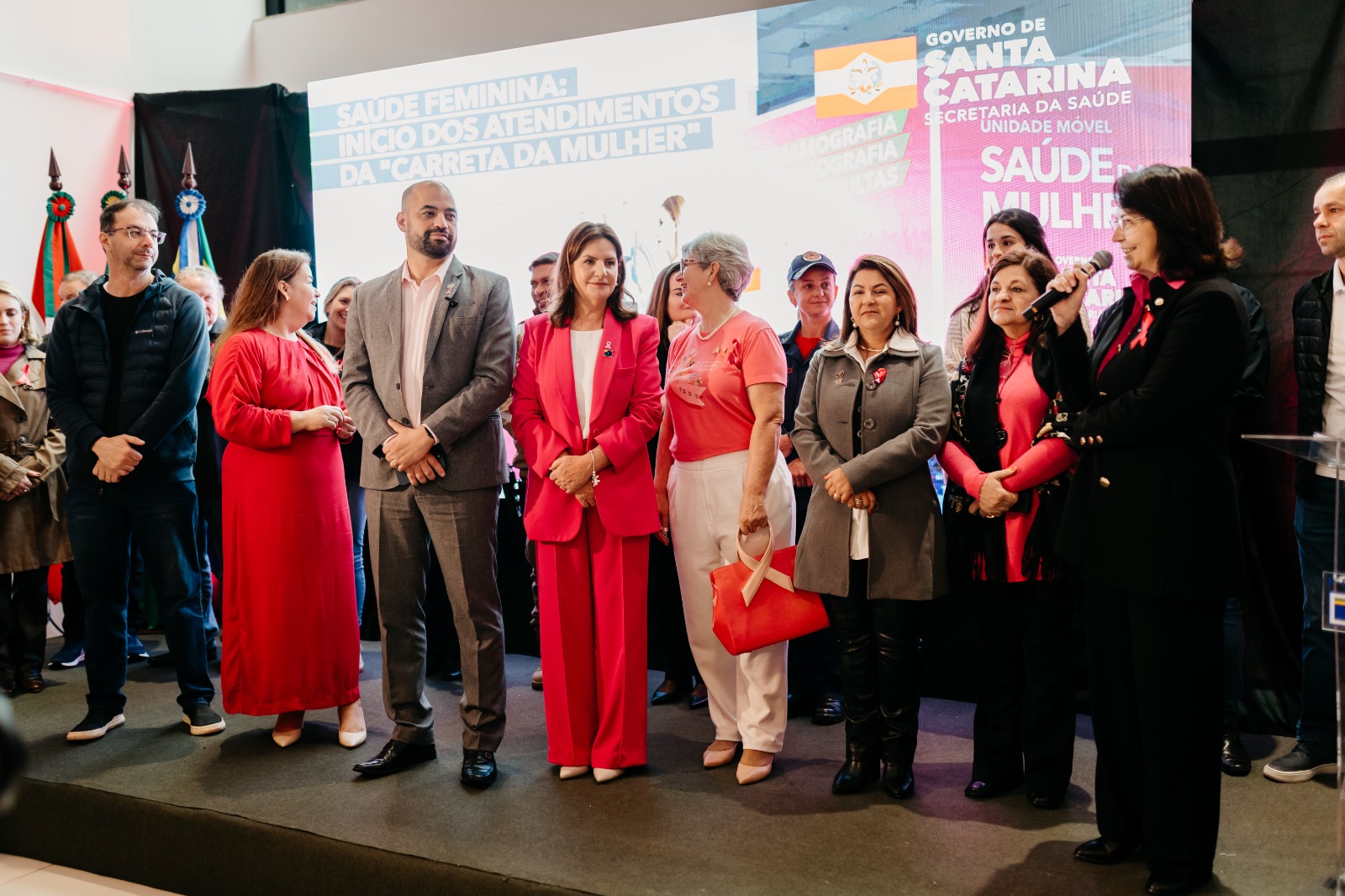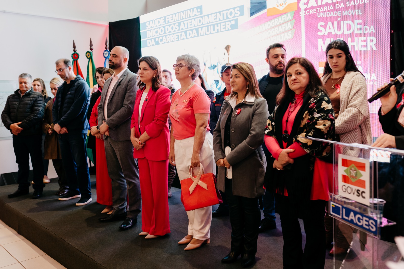 O mês de outubro chega iluminado pelo rosa, cor que simboliza cuidado, esperança e prevenção. O “Outubro Rosa” é um movimento que lembra a todas as mulheres - e também suas famílias - a importância do diagnóstico precoce no combate ao câncer de mama e de colo do útero. Neste contexto, Lages foi a cidade escolhida pelo Governo do Estado para sediar o lançamento do Programa de Promoção e Prevenção da Saúde da Mulher com a Unidade Móvel “Carreta da Saúde da Mulher”. O evento ocorreu na Praça João Costa (Calçadão) nesta sexta-feira (3 de outubro), e contou com a presença do secretário de Estado da Saúde, Diogo Demarchi; secretária-adjunta, Cristina Pires Paulucci; prefeita de Lages, Carmen Zanotto, e demais autoridades.