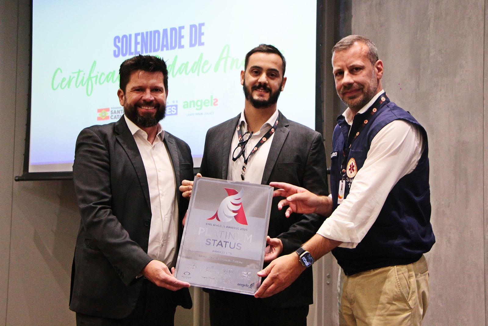 Durante a solenidade, a prefeita Carmen Zanotto recebeu a placa que oficializa Lages como “Cidade Angels de Santa Catarina”, evidenciando o trabalho conjunto entre o Governo do Estado, gestão municipal, profissionais de saúde e instituições parceiras. “Quando diferentes esferas do governo caminham juntas, com planejamento, responsabilidade e compromisso, os resultados aparecem. Este reconhecimento é uma conquista coletiva, construída com o apoio do secretário de Estado da Saúde, Diogo Demarchi Silva, das equipes da Saúde, da Educação, do Samu, do Hospital Nossa Senhora dos Prazeres e das instituições que caminham ao nosso lado. Quando há união de esforços conseguimos salvar vidas e oferecer uma rede cada vez mais qualificada”, defende a prefeita.