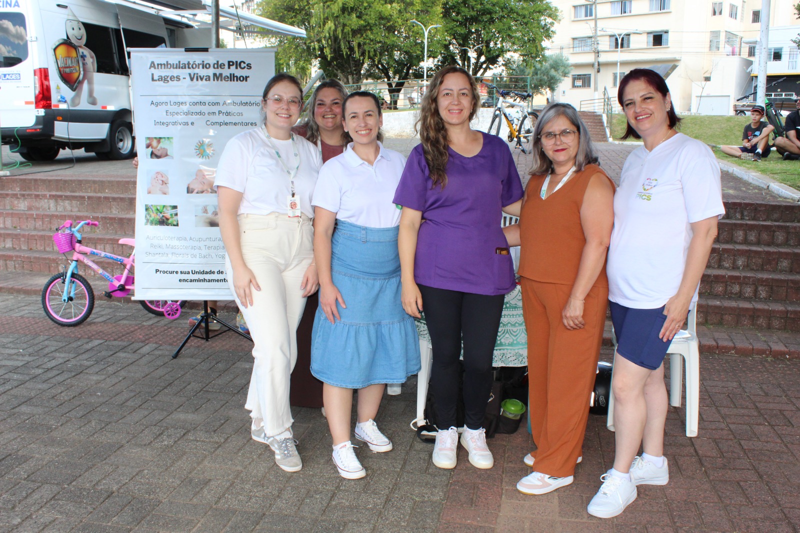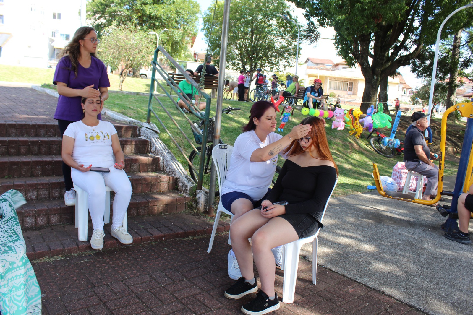Durante toda a tarde, parceiros também promoveram orientações e atividades na praça, ampliando o acesso à informação e incentivando hábitos saudáveis. A ação também contou com as Práticas Integrativas e Complementares em Saúde (PICS), como a auriculoterapia, oferecendo aos participantes alternativas terapêuticas que contribuem para o equilíbrio físico e emocional e fortalecem o cuidado integral à saúde.
