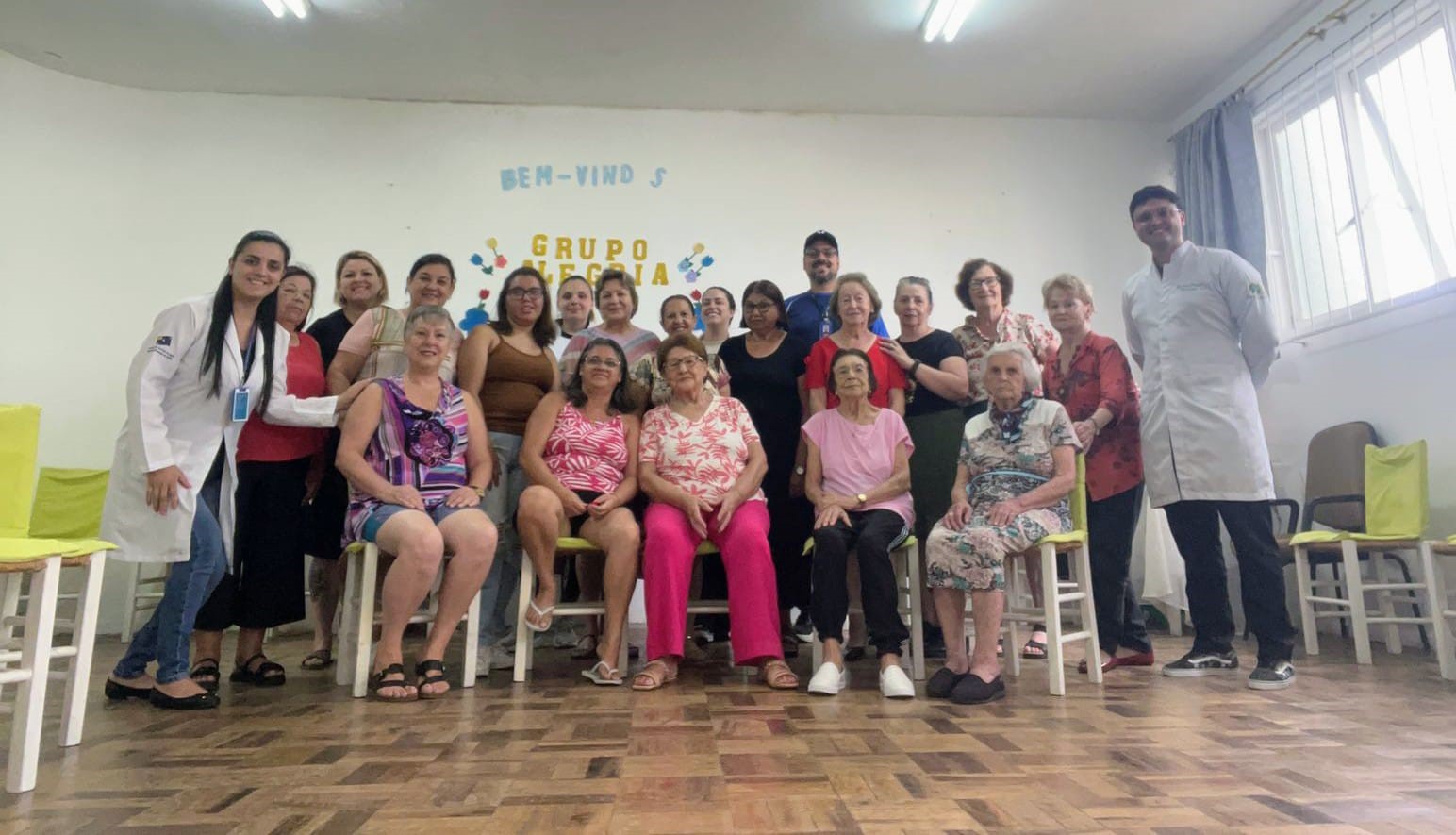 Na UBS Petrópolis, o destaque foi o Grupo Alegria, com atividades voltadas à prevenção da obesidade. A iniciativa contou com a parceria do nutricionista Tiago e do educador físico André, profissionais da Secretaria Municipal da Saúde, que orientaram os participantes sobre hábitos saudáveis e qualidade de vida.